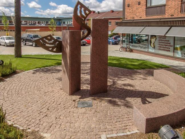 Sijainti: Kuninkaanlähteenkadun ja Torikadun risteyksen lähellä Rauhankyyhky on Puolustusvoimien Kansainvälisen Keskuksen toimesta tilattu suomalaisen rauhanturvatoiminnan 50-vuotismuistomerkki. Veistoksen ympäristön on taiteilijoiden kanssa yhteistyössä suunnitellut kaupunginpuutarhuri Ilpo Möttönen. Sijoituspaikkaa etsittäessä eräänä vaihtoehtona oli Keskuskadun päätteenä olevan uuden hautausmaan ”Valkoinen kallio”. Siitä luovuttiin, koska tämän taideteoksen haluttiin symboloivan rauhaa yleisemmin eikä muodostuvan hautamuistomerkin kaltaiseksi. Juhlavuoden aikana vireillä oli nimittäin toinenkin muistomerkkihanke. Helsingin Hietaniemen hautausmaalle haluttiin pystyttää muistomerkki operaatioissa menehtyneiden rauhanturvaajien muistoksi. Kyseinen kuvanveistäjä Matti Peltokallion tekemä muistomerkki paljastettiin toukokuussa 2006. Reijo Paavilainen ja Pertti Mäkinen ovat luoneet teokseen yksinkertaisin keinoin puhuttelevan, katsojalle helposti avautuvan symboliikan. Graniittipylväiden eli ”kahden riitaisan osapuolen ” välissä lentää pronssinen rauhankyyhky kuvaten YK:n rauhanturvatoimintaa. Teokseen kuuluu kaareva penkki, jolla voi viivähtää teoksen äärellä. Teostiedot on kaiverrettu kivipaaden kylkeen.