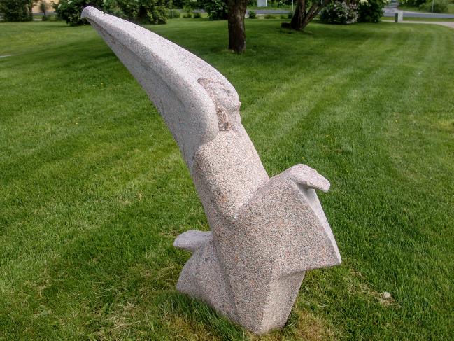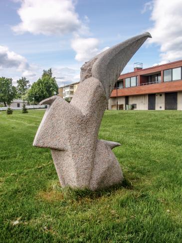 Latvialainen taideopiskelija veisti harmaaseen graniittiin hiljaisen vaikuttavan sakraalin enkelin. Hartauden kokemus välittyy katsojalle askeettisen muotokielen. Veistos on sijoitettu seurakuntakeskuksen nurmikolle. Tekijä halusi sen koivupuun viereen. Nuori tekijä liittää enkelin kotimaansa tarujen luonnonmystiikkaan. Hän näkee enkelin hahmossa kukkivan saniaisen. Tarunhohtoista kukkaa etsitään kesäpäivän seisauksen aikaan yöllä, ja joka saniaisen / enkelin löytää, hänen toiveensa toteutuu. ” Uskon mystisiin asioihin. Siksi valitsin jotain siitä maailmasta. Enkelillä on tärkein osa näkymättömän ja näkyvän maailman välissä. Jos meissä on jotakin taivaallista, niin se on tullut enkeleiltä. Useimmiten ne tulevat innoittavin ajatuksin, joka auttavat meitä ratkaisemaan ongelmia.” V. B. Sijainti: Seurakuntakeskuksen (Keskuskatu 44) ja linja-autoaseman välisellä nurmikolla