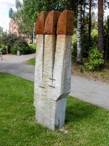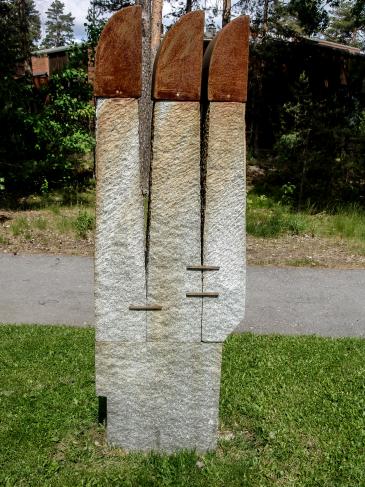 Hallitulla ammattitaidolla yhdestä kivestä lohkoen koottu konstruktiivinen veistos. Norjalaisen, Ruotsissa elävän kuvanveistäjän ”Kolme kuningasta tai kolme kuningatarta” liittyy muotona yllättävän sujuvasti Kankaanpään taidekoulun alkuvuosien voimakkaasti konstruktiiviseen perinteeseen. Pohjanlinnan koulun tienäkymässä ja 70-luvulla palaneen Pohjanlinnan, nykyisen Hotelli Kantrin edustalla veistos viittaa pohjoismaiseen historiaan ja mytologiaan. Sijainti: Hotelli Kantrin edustalla, Linnankatu 2, Kuninkaanlähteenkadun varrella